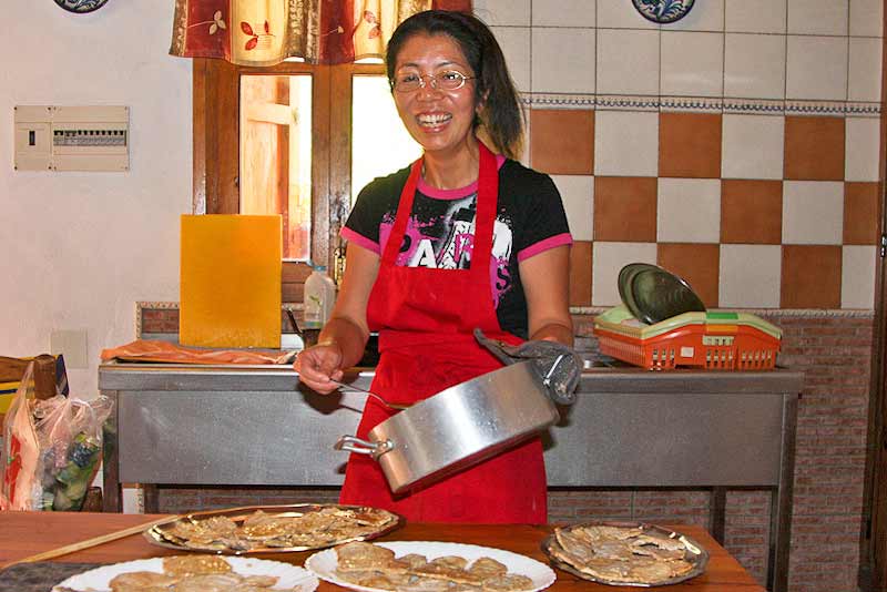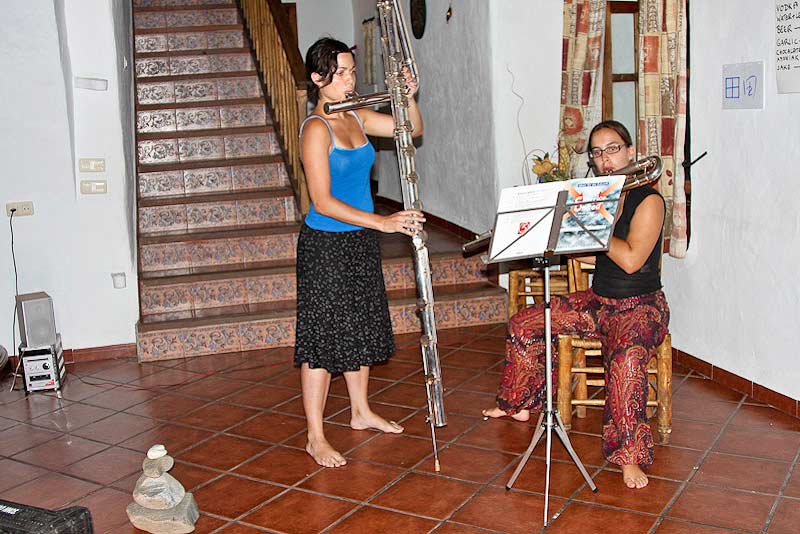 Wem das Programm noch nicht genug war, der konnte morgens, vor dem gemeinsamen Frühstück, mit Junko Ueda, selbst Musikerin, grandiose Köchin und Wil Offermans’ Frau, sich mit Kiko, einer japanischen Bewegungstechnik, aufwärmen oder im hauseigenen Pool eine Runde schwimmen.”