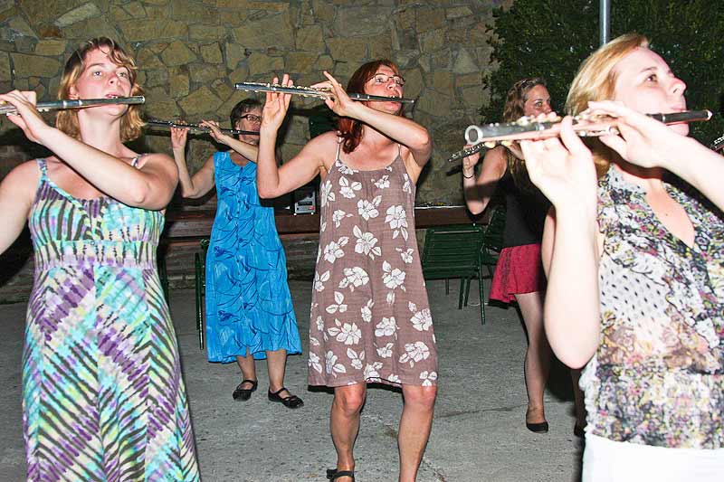 Abgerundet wurde das Programm durch Improvisations- (unter anderem mit Offermans eigen entwickelter Daumenflöte Thumpy) und Ensembleeinheiten sowie einem Abend für Ethnische Flöten. Highlight dabei war, abgesehen von dem Spiel im großen Flötenensemble und dem Ausprobieren von exotischen Flöten, das Spiel auf der Kontrabassflöte. Kompositionen für Flötenensemble, wie Bamburia, Kotekan, das Quartet Just a Short Version wurden gespielt, genauso wie das wirklich mitreißende Stück Dance with Me inklusive Choreographie.